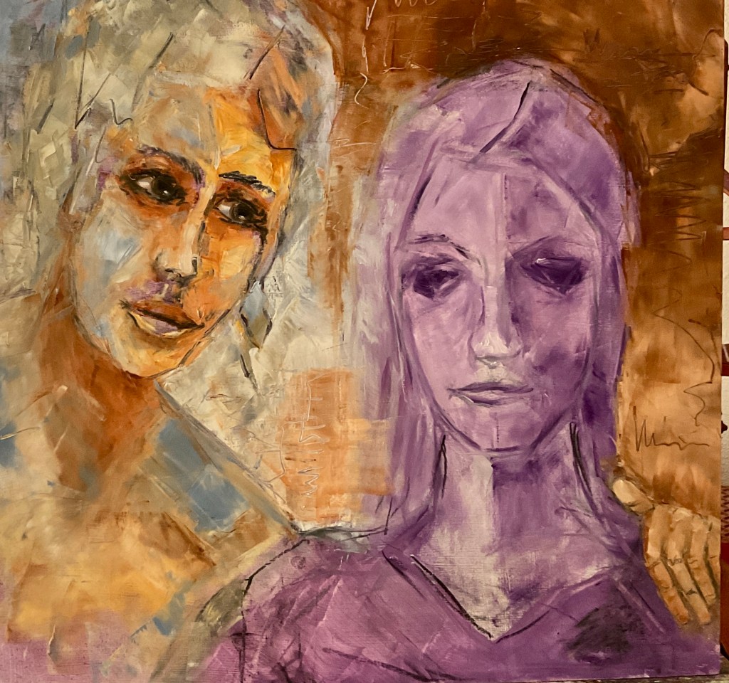 Neutro colorido y pensamientosPintura abstracta que representa a dos mujeres bailando, destacando colores vibrantes y formas fluidas.Retrato artístico en tonos púrpuras que captura la expresión contemplativa de una figura femenina.Retrato expresionista de una mujer entre figuras abstractas.figura femenina en un ambiente artístico y expresivo, destacando el uso de colores cálidos.Pintura abstracta que presenta una figura estilizada en un fondo geométrico y colorido.figura femenina entre nenúfares Figura en reposo con fondo neutroDerrumbe de afiladas tragedias